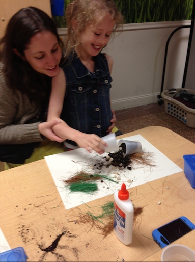 Students at BAC began with an outdoor adventure following the winding pathways through Brooklyn Bridge Park where they were encouraged to explore and collect natural materials to be used in their own works of art. In the spirit of Richard Long and Robert Smithson, students gathered similar materials of rocks, sticks, leaves and soil and modeled the spirals and circular paths featured in their iconic works. Students then created a collage made from these natural materials. In a further exploration of natural materials, students looked at the art installation “Water Falls” by the artist Olafur Eliasson and created their own water inspired assemblage using water, rocks and shells.